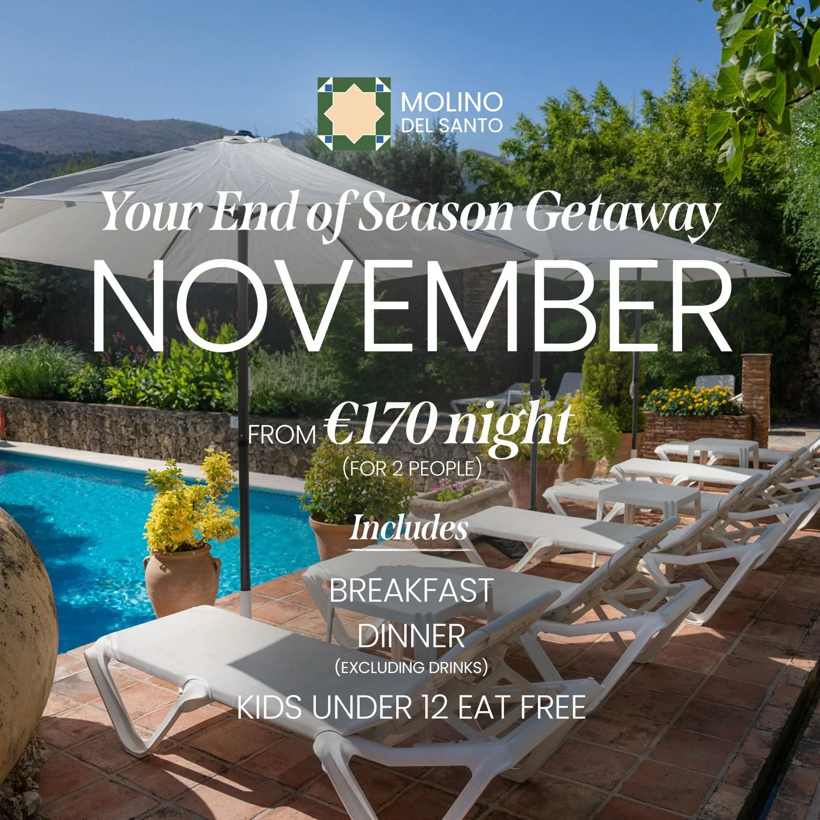 Whether you’re looking for pure relaxation, outdoor adventure, or simply one last taste of Spanish sunshine before the year ends, Molino del Santo is the perfect place for your November escape.